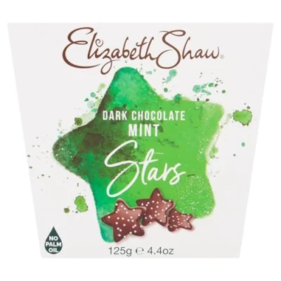 Elizabeth Shaw Dark chocolate mint Stars 125g with peppermint flavouring and flavoured crunchy sprinkles Treat Share Gift Christmas