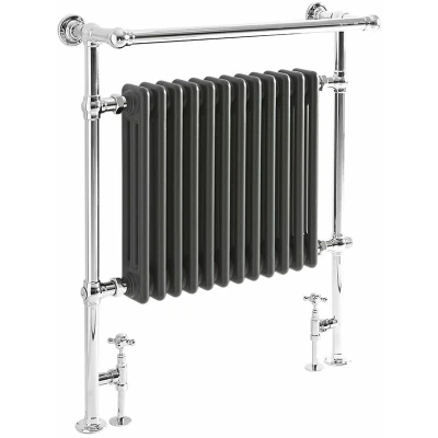 Elizabeth Traditional 930mm x 790mm Floorstanding Chrome and Anthracite Dual Fuel Electric Heated Towel Rail Radiator with Overhanging