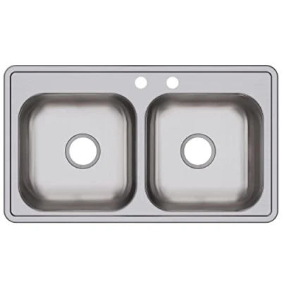 Elkay D23319MR2 22 Gauge Stainless Steel 33" x 19" 6.4375" Double Bowl Top Mount Kitchen Sink, Bottom Only Spray, Satin, 33 19 6.4375