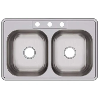 Elkay D233213 Dayton Equal Double Bowl Top Mount Stainless Steel Sink, Satin