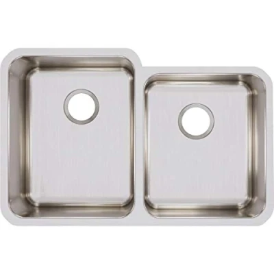 Elkay Lustertone ELUH3120R Offset Double Bowl Undermount Stainless Steel Kitchen Sink