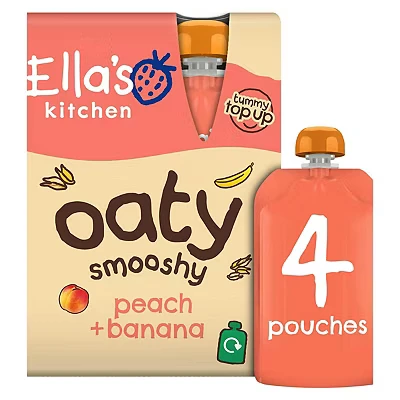 12 Advantage card points. Ella's Kitchen Organic Oaty Peach & Banana Smoothie Food Pouch Multipack 12+ months 90g 4s FREE Delivery on orders over 45 GBP.