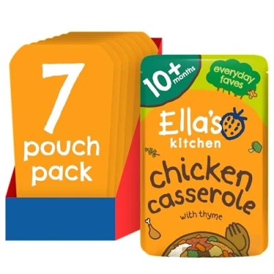 Ella's Kitchen Chick Casserole comes in a convenient resealable pouch, making it perfect for busy families on the go. Whether you're at home or out for an adventure, this easy-to-use format allows you to serve your baby a tasty meal quickly and easily. The pouch can be enjoyed warm or cold, offering versatility for your feeding routine.