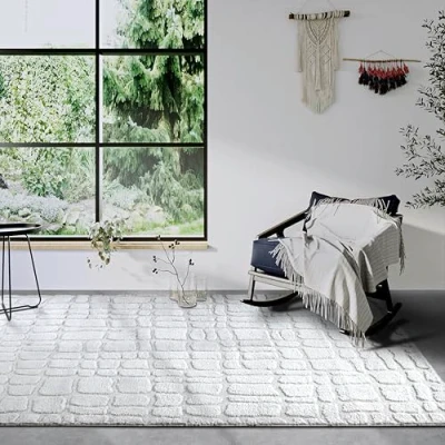 Elle Decor ation High Pile Artistique Rug, Modern Living Room Long Shaggy, Pattern, Fluffy Soft Boho for Room, Bedroom, Cream White, 80 x 120 cm