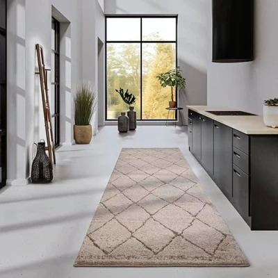Elle Decor ation High Pile Perrotin Rug, Modern Living Room Rug Runner, Long Shaggy, Pattern, Fluffy Soft Boho for Room, Bedroom Beige, 80 x 240 cm