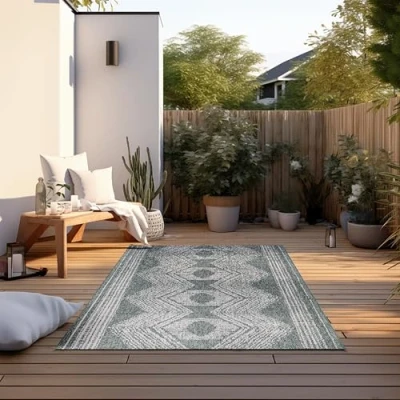 Elle Decoration Indoor and Outdoor Rug Reversible Weatherproof & Waterproof Modern Boho Ethnic Pattern Geometric for Garden, Balcony, Patio, Living Room Green, 160 x 230 cm