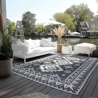Indoor and outdoor rug from ELLE Decoration: our rugs are true all-rounders. You can use the rug as a living room rug, for example, but also enhance your patio with it. The outdoor rugs are flat woven, machine made, suitable for underfloor heating, robust, dirt-repellent and weatherproof The high-quality workmanship and its synthetic fibres make the rug extremely durable and thanks to the synthetic fibres it can be cleaned by washing with carpet shampoo. Indoor and outdoor rug: you can place the rug anywhere without a guilty conscience. Such as: as a runner in the bathroom or hallway, in the dining room, as a kitchen runner or even on the balcony, terrace, conservatory or by the pool.