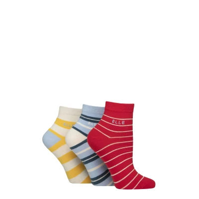 Elle Ladies Cotton Anklet Socks Soft, Short, Plain, Striped & Patterned with Hand Linked Toes Multipack of 3 Size 4 8 (UK, Numeric, 4, 8, Regular, Seafarer Striped)
