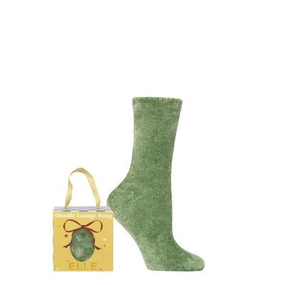 Elle Women’s Gift Boxed Socks Cosy, Soft & Silky Chenille Lounge Socks, Plain, Idea, Present for Christmas 1 Pair Size 4 8 (UK, Numeric, 4, 8, Regular, Sage Green)