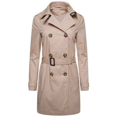 Elle Womens Tina Double Breasted Trench Coat in Stone Cotton Size 16 UK