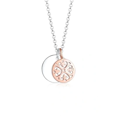 Elli Bi Color Ornament Circle 925 Sterling Silver Rose Gold Plated Necklace of Length 45cm