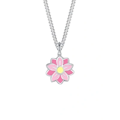 Elli Children's 925 Sterling Silver Girls Flower Pink Pendant with Necklace of Length 36 cm