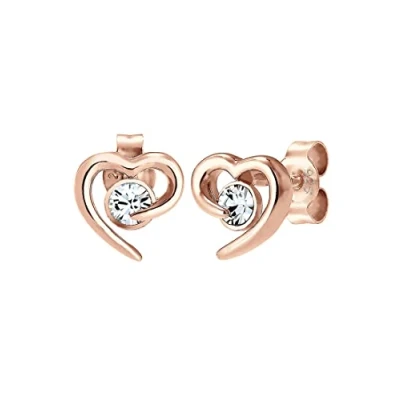 Elli Earrings 925 Sterling Silver Rose Goldplated Heart Crystal
