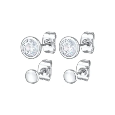 Elli Earrings Ladies Stud Platelet Geo Set Silver Coloured with Crystals