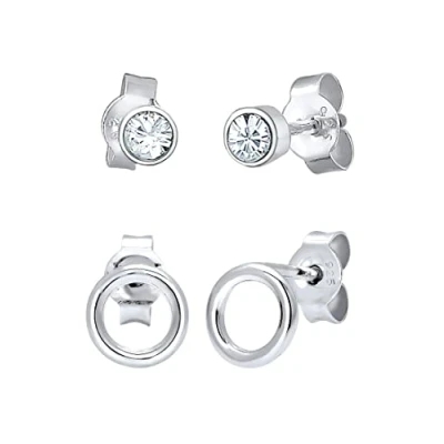 Elli Earrings Solitaire Circle Geo Crystals 925 Sterling Silver