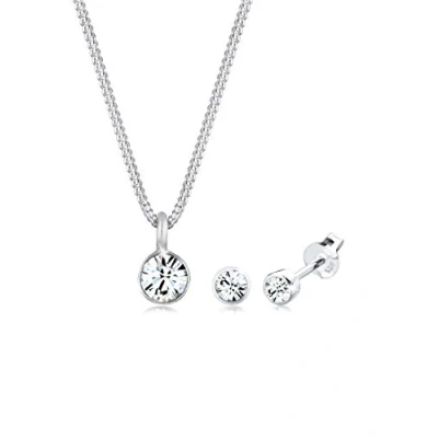 Elli Jewelry Set Ladies Elegant Solitaire Pendant Stud Earrings with Crystals in 925 Sterling Silver