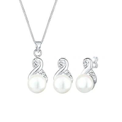Elli Jewelry Set Ladies Infinity Symbol Elegant Stud Earrings with Freshwater Cultured Pearls and Crystals in 925 Sterling Silver