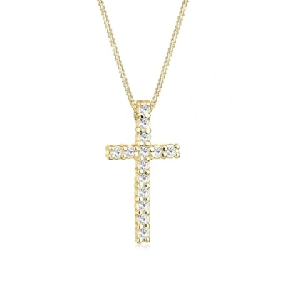 Elli Necklace Ladies Cross Pendant Elegant with Crystals in 925 Sterling Silver Gold Plated