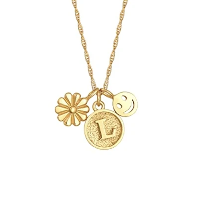 Elli Necklace Ladies Flower Smiley Disc Pendant Letter L In 925 Sterling Silver Gold Plated