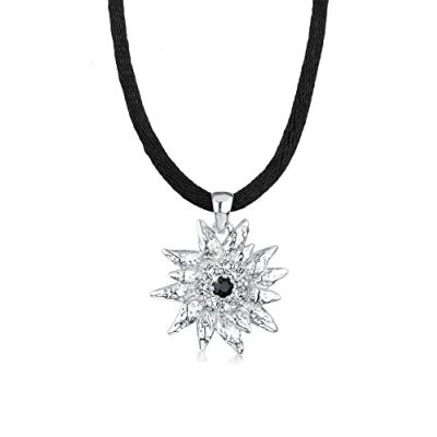 Modern necklace with edelweiss pendant in 925 sterling silver in 45 cm length This piece of silver jewellery is set with a black crystal and makes every heart beat faster Designed in Germany - This handcrafted piece of silver jewellery is tarnish-protected, highly polished and made in high jeweller's quality. Dreamlike real jewellery for all those who value high quality. Whether festive or casual, the silver jewellery will inspire. A perfect companion for everyday wear and a must-have for every modern woman. The ideal gift for a wife or girlfriend. The jewel is particularly suitable as a gift for Mother's Day, Christmas, birthday, Valentine's Day, engagement or anniversary. Supplied in sweet turquoise velvet packaging
