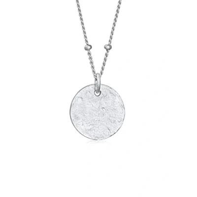 Elli Necklace Ladies Satellite Chain Plate Pendant Hammered in 925 Sterling Silver