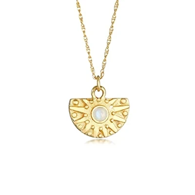 Elli Necklace Ladies Sun Pendant Coin Vintage Trend with Moonstone in 925 Sterling Silver Gold Plated