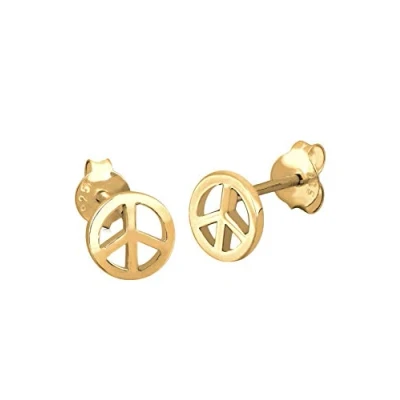 Elli Women 925 Sterling Silver Gold Plated Peace Sign Earrings 0311131912