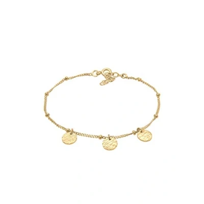Arm Chain Length: 16cm + 3cm Extension Chain / Clasp: Spring Ring Clasp / Wide Gold-plated Silver Strap: 1mm Anchor chain bracelet with 3 round 7mm hammered surface pendants made of genuine 925 sterling silver, color gold This ladies bracelet can be beautifully combined with other delicate arm chains, bracelets or women's jewelry The ideal gift for birthday, Christmas, Valentine's Day for your mother, wife, girlfriend, daughter, sister or grandma The highly polished and tarnish-protected silver jewelry is delivered in an original Elli gift jewelry bag