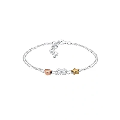 Elli Women Infinity Heart Star Tri Color 925 Sterling Silver Bracelet of Length 16cm