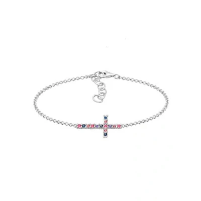 Elli Women's 925 Sterling Silver Cross Religion Talisman 0.001 ct Crystals Pendant Bracelet 16 cm length