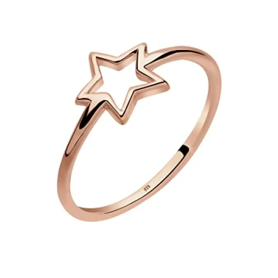 Elli Women's 925 Sterling Silver Rose Gold Plated Star Ring, Size N