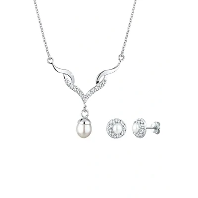 Elli Women's 925 Sterling Silver Teardrop Freshwater Pearl Necklace of Length 45 cm with Stud Earrings