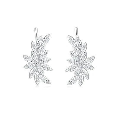 Elli Women Silver 925 Sterling Flower Ear Cuff Crystal Earrings