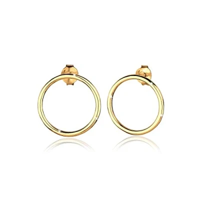 Elli Women's 925 Sterling Silver Gold Plated Xilion Cut Circle Basic Geo Stud Earrings