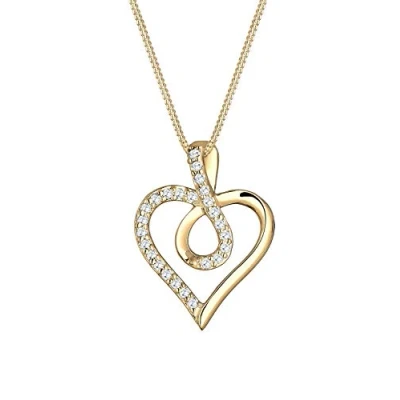 Elli Women's 925 Sterling Silver Gold Plated Zirconia Infinity Heart Cubic Necklace of Length 45 cm