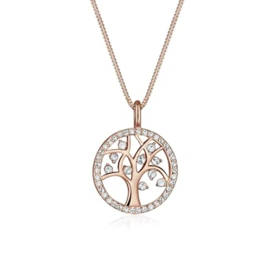 Elli Women's 925 Sterling Silver Xilion Cut Rose Gold Necklace of Length 45 cm