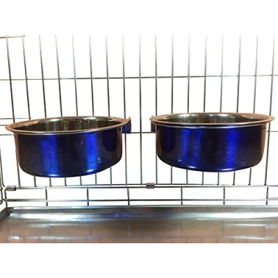 Ellie Bo Pair of Dog Bowls For Crates, Cages or Pens and 3 Sizes (2.0Ltr Large, Blue)