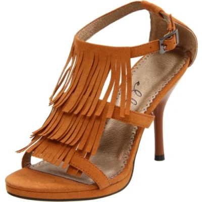 Platform sandal featuring fringed vamp and adjustable ankle strap