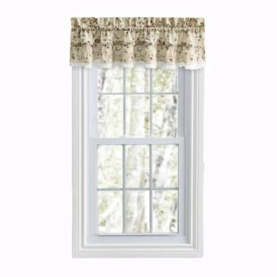 Inexpensive way to transform the atmosphere, mood and theme that you are looking to create in your kitchen Conveniently machine washable making them practical for the kitchen; Measurements 52-Inch overall width; 12-Inch overall length Made from 70-percent polyester/30-percent cotton creates a sturdy curtain that is extremely durable and will hold its color and shape even after repeated washings The ruffled valance is constructed with a standard 1-1/2-Inch rod pocket, 2-1/2-Inch header and ruffled border with lace trim accent Coordinating tiers and swags available thru Amazon; Additional Ellis Curtain Kitchen Collection patterns also available thru Amazon; Made in the USA