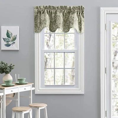 Ellis Curtain Lexington Leaf Scallop Valance, Sage