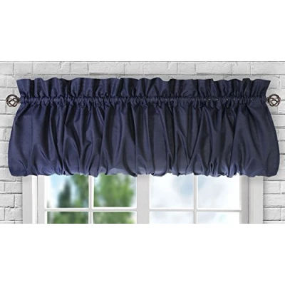 Bring beauty and a Brand new look into your home decor at an economical price The popular solid colors coordinate easily with a variety of other solids, checks, plaids and stripes without over powering them Engineered form a lighter fabric that is designed to allow some light in while providing privacy; Constructed with a 1.5-inch rod pocket, decorative 2.5-inch header and chamber to create the poufy balloon effect, for a fuller look fill valance with tissue paper Width is measured overall 60-Inch, length is measured 15-Inch from header top (ruffle above the rod pocket) to bottom of valance