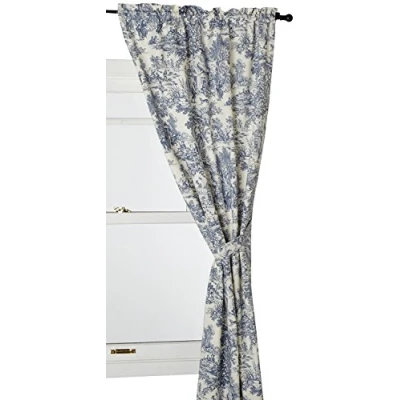 100% cotton for smoother draping effect Standard rod pockets; 3 inch hems; Includes 2 standard tiebacks Popular toile print fabric creates an updated and stylish look to any room Measurements 68-inch overall width (both 34-inch panels combined) 54-inch overall length Made in the USA; Dry clean recommended