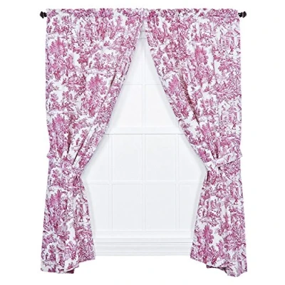 Ellis Curtain Victoria Park Toile 68 Inch by 84 Tailored Panel Pair with Tiebacks, Red