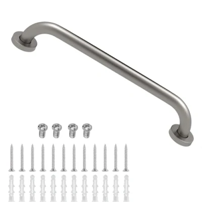 16 inch bathroom grab bar supports up to 500 pounds of pulling force. Solid brass grab bar and brushed nickel finish Safety meets sophistication with these heavy duty grab bars while providing added security in the bath Suitable for bedroom, kitchen, bathroom, toilet, bathtub, living room, etc. Easy to mount on a wall with all hardware included. Easy installation: complete with wall mounting accessories, concealed screws, beautiful and elegant look, Weight: 0.9038952742 pounds, Manufacturer: ELLO&ALLO