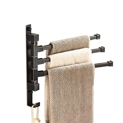 ELLO&ALLO Oil Rubbed Bronze Swing Out Towel Racks for Bathroom Holder Wall Mounted Bars with Hooks 3 Arm