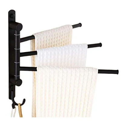 ELLO&ALLO Oil Rubbed Bronze Swing Out Towel Racks for Bathroom Holder Wall Mounted Bars with Hooks 3 Arm