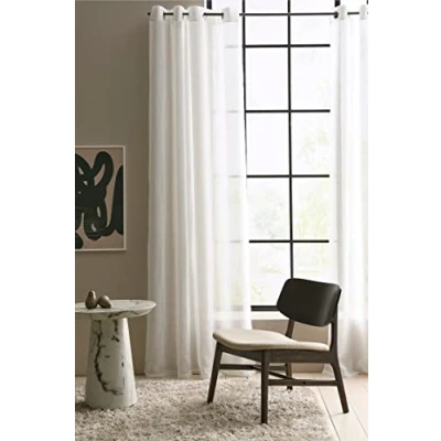 White Curtain Sheer Window Curtains Light Filtering Half Eyelet Drapes Linen Voile...