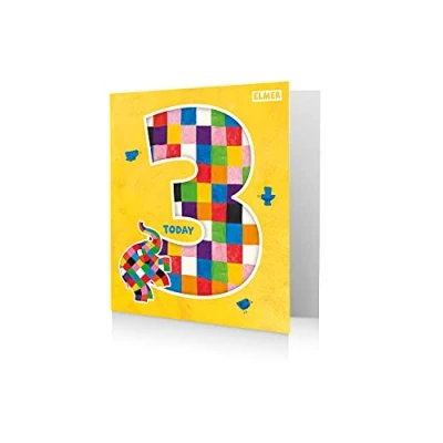 Elmer The Patchwork Elephant Age 3 Birthday Card