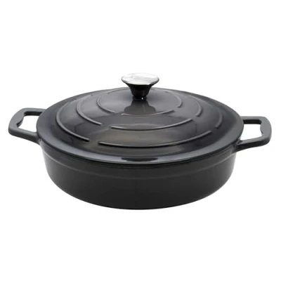 Elo 3382826 Enameled Cast Iron Casserole Non Stick Low with Lid, Classic Grey, Oven Safe, All Heat Source, Induction Dutch 28 cm 3L, 2 to 4 People