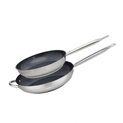 Elo 9804750 Set of 2 Stainless Steel Frying Pans 18/10, Induction Pan, All Hob Pans, 28 cm and 32 cm, Steel, x 6